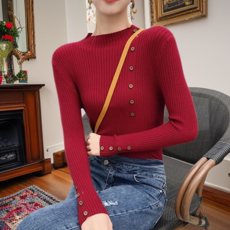 여자 폴라 보카시 니트 가을 겨울 이너 단추 스웨터 보디 니트 이너